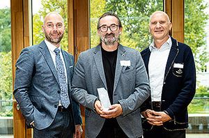 Auch in diesem Jahr konnte sich die WBH über einen Preisträger des Friedrich-Dessauer-Preises freuen: Benedikt Althaus, Bachelor-Absolvent im Studiengang „Elektro- und Informationstechnik“, überzeugte mit seiner Abschlussarbeit zum Thema „Entwicklung eines Konzepts zur automatisierten Systemprüfung von elektromechanischen Türbeschlägen“. Der VDE Rhein-Main würdigt mit dem Preis hervorragende Leistungen auf technisch-wissenschaftlichem Gebiet und betont zugleich die gesellschaftliche Bedeutung von Ingenieur:innen und ihrer Arbeit. Die Laudatio hielt Prof. Dr.-Ing. Rüdiger Ballas.