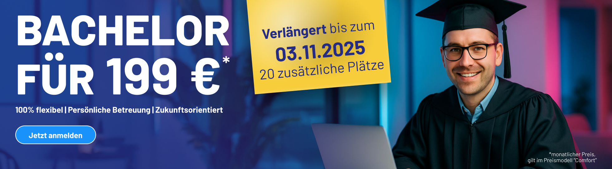 Der Studienvertrag kann ohne Angabe von Gründen erstmals zum Ablauf des ersten Halbjahres nach Vertragsabschluss (Mindestlaufzeit 6 Monate) mit einer Frist von 6 Wochen gekündigt werden. Nach Ablauf des ersten Halbjahres ist eine Kündigung jederzeit mit einer Frist von 3 Monaten möglich. Ergänzend zu den Allgemeinen Studienbedingungen gilt für den Kündigungsfall das jeweils von mir gewählte Modell. Wenn die Studiendauer weniger als 12 Monate beträgt, ist eine Kündigung jederzeit mit einer Frist von 3 Monaten möglich. Bei Nano Degrees ist wegen der kurzen Dauer eine ordentliche Kündigung des Vertrags ausgeschlossen.